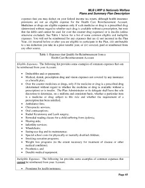 expenses. You will not be reimbursed for any expenses that are (i) not incurred in the Plan