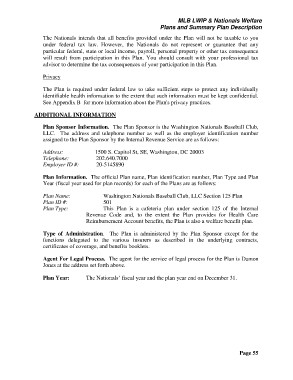 Plan Sponsor Information. The Plan Sponsor is the Washington Nationals Baseball Club,