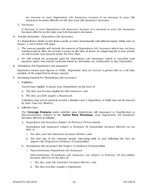 An increase in your Dependents Life Insurance because of an increase in your Life