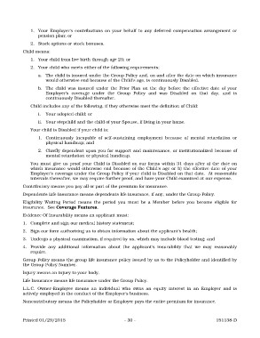 Employer's coverage under the Group Policy if your child is Disabled on that date. At reasonable