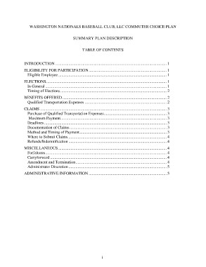 WASHINGTON NATIONALS BASEBALL CLUB, LLC COMMUTER CHOICE PLAN