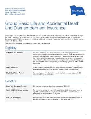 benefit in the event of an eligible member’s, or his or her dependent’s covered death. Basic Accidental Death and