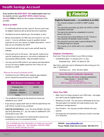 used for healthcare expenses in retirement or withdrawn for Each year, Fives will contribute to your HSA as follows: