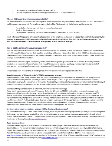 months, if the Plan is properly notified about the second qualifying event. This extension may be available to the spouse and any