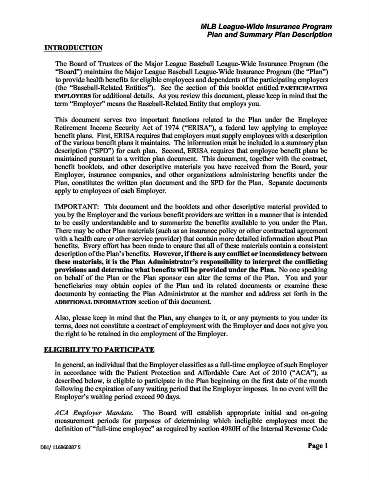 “Board”) maintains the Major League Baseball League-Wide Insurance Program (the “Plan”)