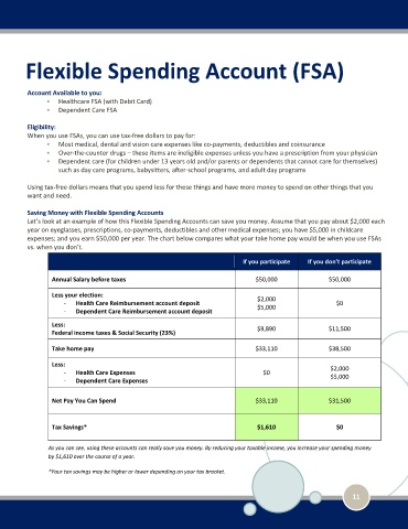 expenses; and you earn $50,000 per year. The chart below compares what your take home pay would be when you use FSAs