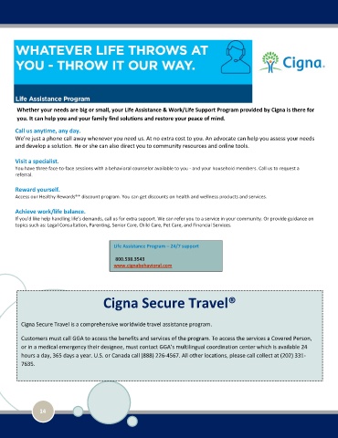 Cigna Secure Travel is a comprehensive worldwide travel assistance program.