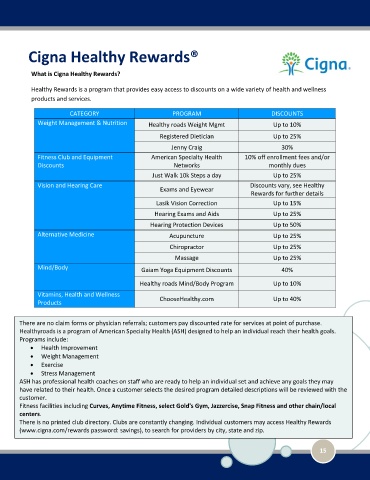 (www.cigna.com/rewards password: savings), to search for providers by city, state and zip.