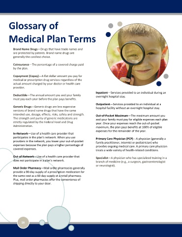 Out-of-Network—Use of a health care provider that Specialist—A physician who has specialized training in a