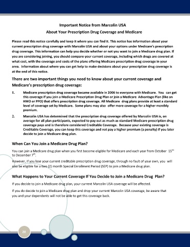 If you decide to join a Medicare drug plan, your current Marcolin USA coverage will be affected.