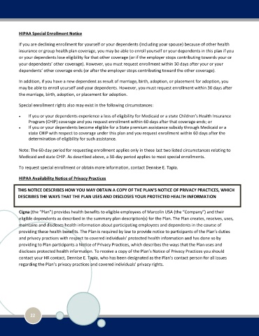 Cigna (the “Plan”) provides health benefits to eligible employees of Marcolin USA (the “Company”) and their