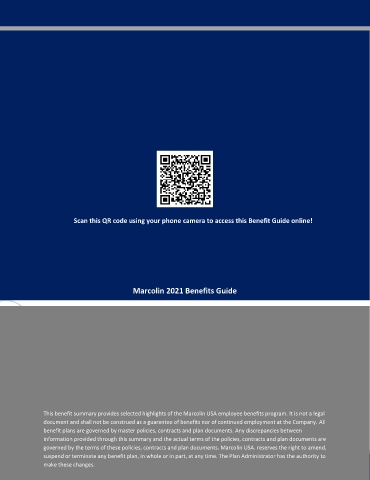 This benefit summary provides selected highlights of the Marcolin USA employee benefits program. It is not a legal