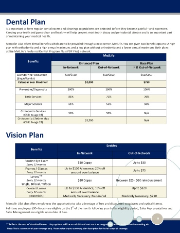 Marcolin USA offers dental benefits which are to be provided through a new carrier, MetLife. You are given two benefit options: A high