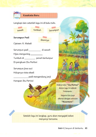 Lengkapi dan catatlah lagu ini di buku tulis.