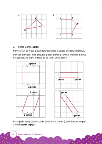 Perhatikan gambar pasangan garis pada kertas berpetak berikut.