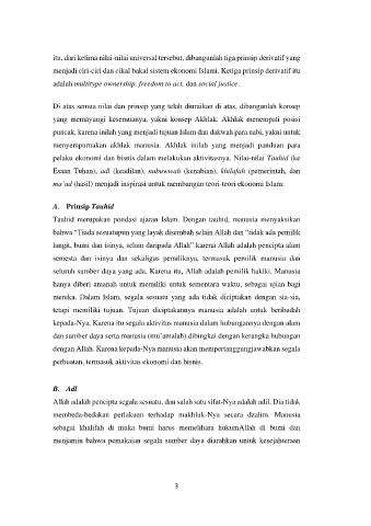 menjadi ciri-ciri dan cikal bakal sistem ekonomi Islami. Ketiga prinsip derivatif itu