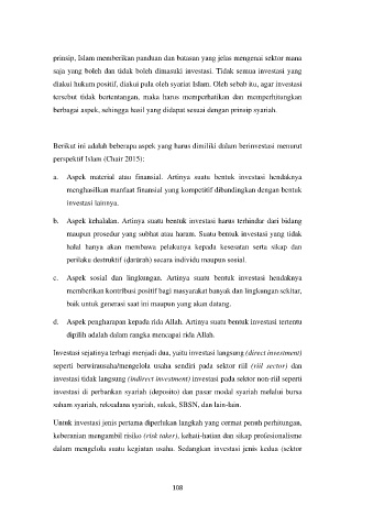 b. Aspek kehalalan. Artinya suatu bentuk investasi harus terhindar dari bidang