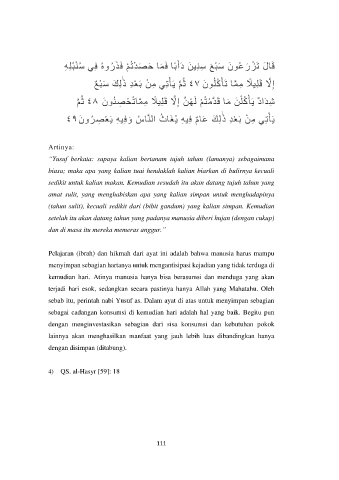 sedikit untuk kalian makan. Kemudian sesudah itu akan datang tujuh tahun yang