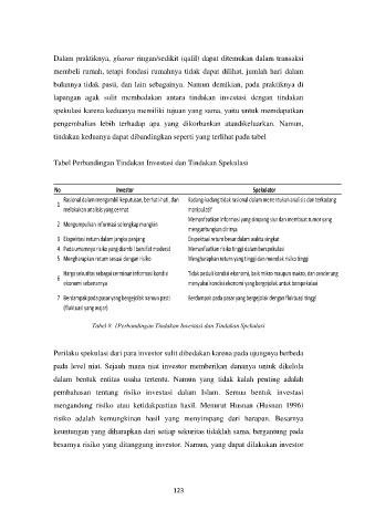 Tabel 8. 1Perbandingan Tindakan Investasi dan Tindakan Spekulasi