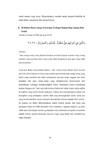 E. Di Dalam Harta (uang) Seseorang Terdapat Bagian Bagi Agama Dan
