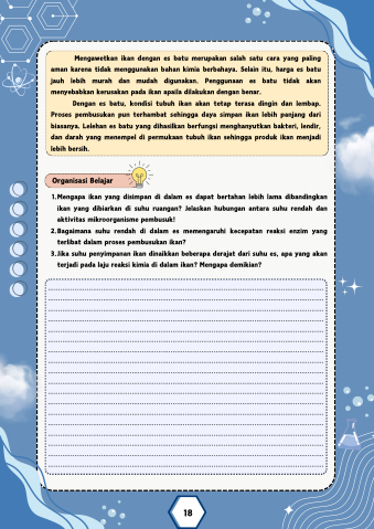 3.Jika suhu penyimpanan ikan dinaikkan beberapa derajat dari suhu es, apa yang akan terjadi pada laju reaksi kimia di dalam ikan? Mengapa demikian?