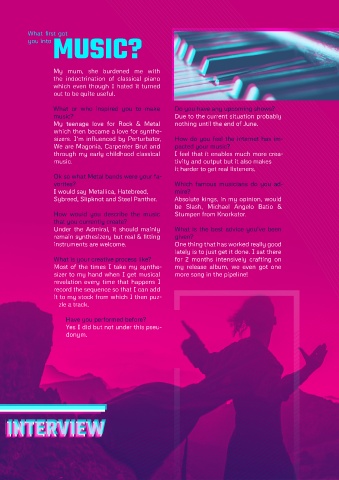 sizers. I‘m influenced by Perturbator, How do you feel the internet has im-