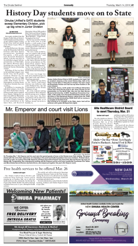 The Dinuba Sentinel Community Thursday, March 14, 2019 | A7 History Day students move on to State