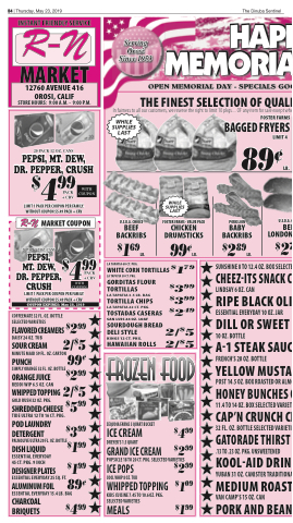 OPEN MEMORIAL DAY - SPECIALS GOOD THE FINEST SELECTION OF OF QUALITY IN In fairness to to to all our customers we reserve the right to to to limit 10 pkgs OF OF any item for sale except where to to to or to to to all OROSI CALIF