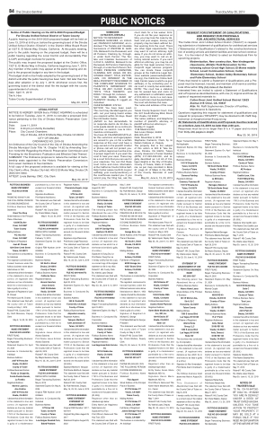 A public hearing on the 2019-2020 proposed budget will be held on June 13, 2019 at 6:00 p.m. before the governing board of the Dinuba Uni ed School District (“District”) in the District Of ce Board Room at 1327 E. El Monte Way, Dinuba, California. At this public meeting, prior to the public hearing on the proposed budget, there will be a public hearing regarding the Local Control and Accountability Plan