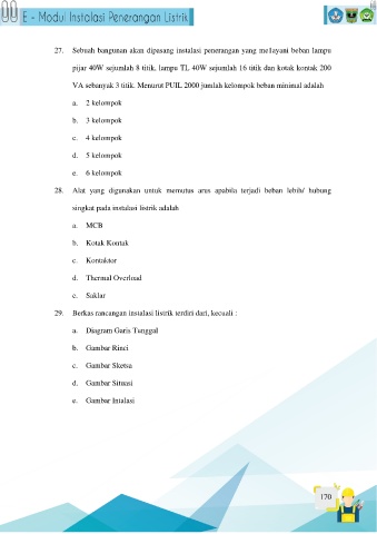 27. Sebuah bangunan akan dipasang instalasi penerangan yang me1ayani beban lampu
