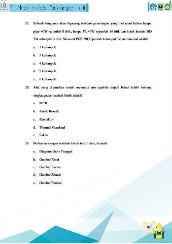 27. Sebuah bangunan akan dipasang instalasi penerangan yang me1ayani beban lampu