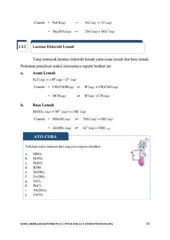 Contoh: • NaCl(aq) → Na (aq) + Cl (aq)