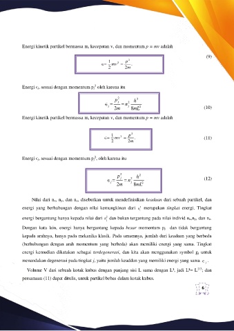 persamaan (11) dapat ditulis, untuk partikel bebas dalam kotak kubus.