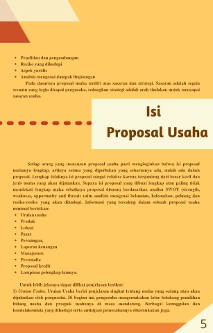 1) Uraian Usaha. Uraian Usaha berisi penjelasan singkat tentang usaha yang sedang atau akan