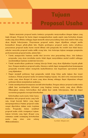 usahanya. Dalam proposal usaha tercantum lengkap tujuan, visi, misi serta rencanarencana