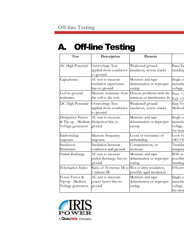 Partial discharge AC test to measure Moisture and tape With some technologies 1-1.5 IEEE 1434