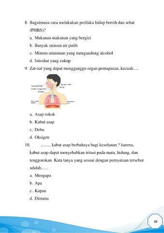 10. ......... kabut asap berbahaya bagi kesehatan ? karena,