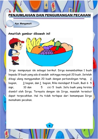 bagian,       3 bagian, dan 1  bagian, Riko mendapat 8 buah, Budi 6  5
