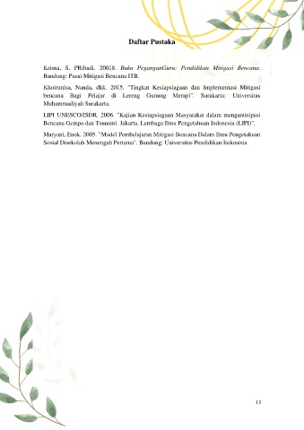 Krisna, S. PRibadi. 20018. Buku PeganganGuru: Pendidikan Mitigasi Bencana.