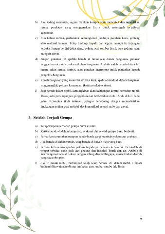 b) Ketika berada di dalam bangunan, evakuasi diri setelah gempa bumi berhenti.