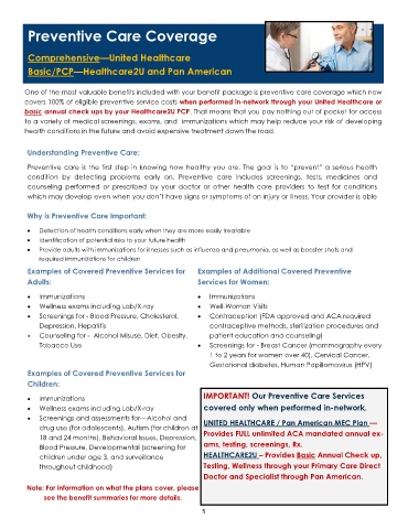 covers 100% of eligible preventive service costs when performed in-network through your United Healthcare or
