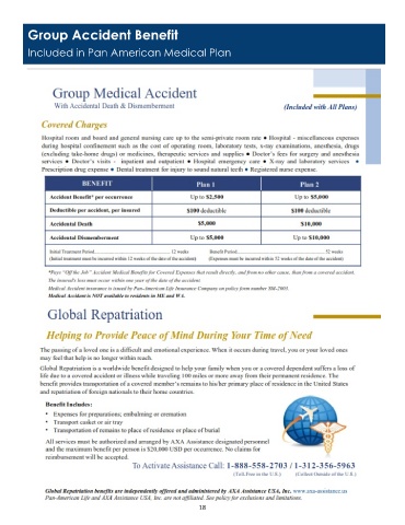 Group Accident Benefit Included in Pan American Medical Plan 18