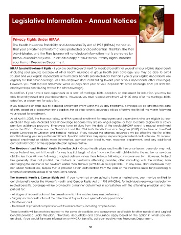enrolled. If you would like more information on WHCRA benefits, call your local Human Resources Department.