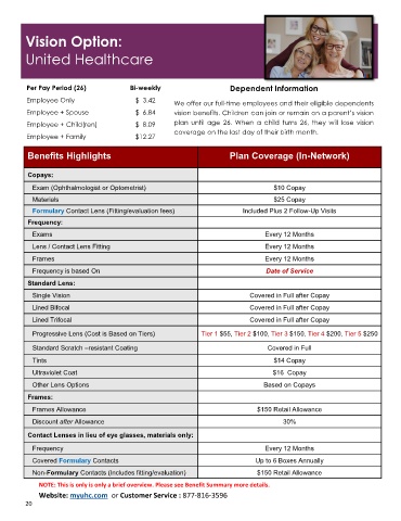 Employee + Spouse $ 6.84 vision benefits. Children can join or remain on a parent’s vision