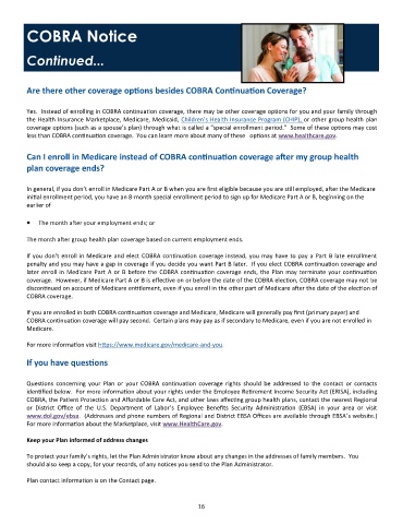 Questions concerning your Plan or your COBRA continuation coverage rights should be addressed to the contact or contacts