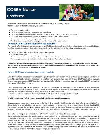 qualifying event has occurred. The employer must notify the Plan Administrator of the following qualifying events:
