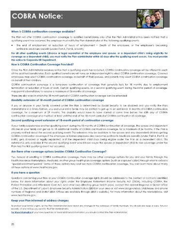 Questions concerning your Plan or your COBRA continuation coverage rights should be addressed to the contact or contacts identified