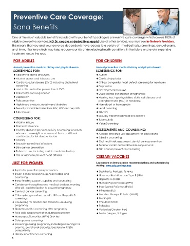 eligible preventive services. NO Dr. copays or deductibles apply! Like all other services, you must see In-Network Providers.