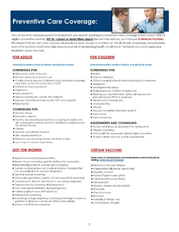 eligible preventive services. NO Dr. copays or deductibles apply! Like all other services, you must see In-Network Providers.
