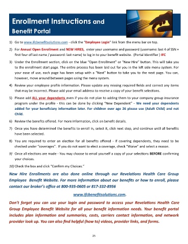 New Hire Enrollments are also done online through our Revelations Health Care Group